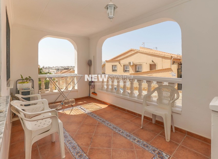 Im ersten Stock befinden sich zwei gut proportionierte Schlafzimmer, beide mit Einbauschränken, sowie ein modernes Badezimmer mit einer begehbaren Dusche. Die Patio-Türen öffnen sich zu einem privaten Balkon, von dem aus Sie schöne Ausblicke auf die umliegende Gegend genießen können. Hier finden Sie eine Wendeltreppe, die zu einem großzügigen Dachsolarium führt, das noch mehr Außenfläche mit fantastischen Ausblicken über das Gebiet bietet, einschließlich weiter Ausblicke auf das Meer in Richtung Guardamar, ein idealer Ort zum Entspannen oder Unterhalten, während Sie das mediterrane Klima genießen. Die Immobilie befindet sich in ausgezeichnetem dekorativen Zustand und wird möbliert zum Verkauf angeboten, vorbehaltlich einer Inventarisierung, aber umfasst alle weißen Waren. Zu den zusätzlichen Merkmalen gehören erweiterte Wohnräume, ein Keller für Stauraum, verbesserte Aluminiumfenster, Sicherheitsgitter und schöne freie Ausblicke. Es gibt ausreichend Parkmöglichkeiten abseits der Straße, die praktisch in der Nähe liegen.