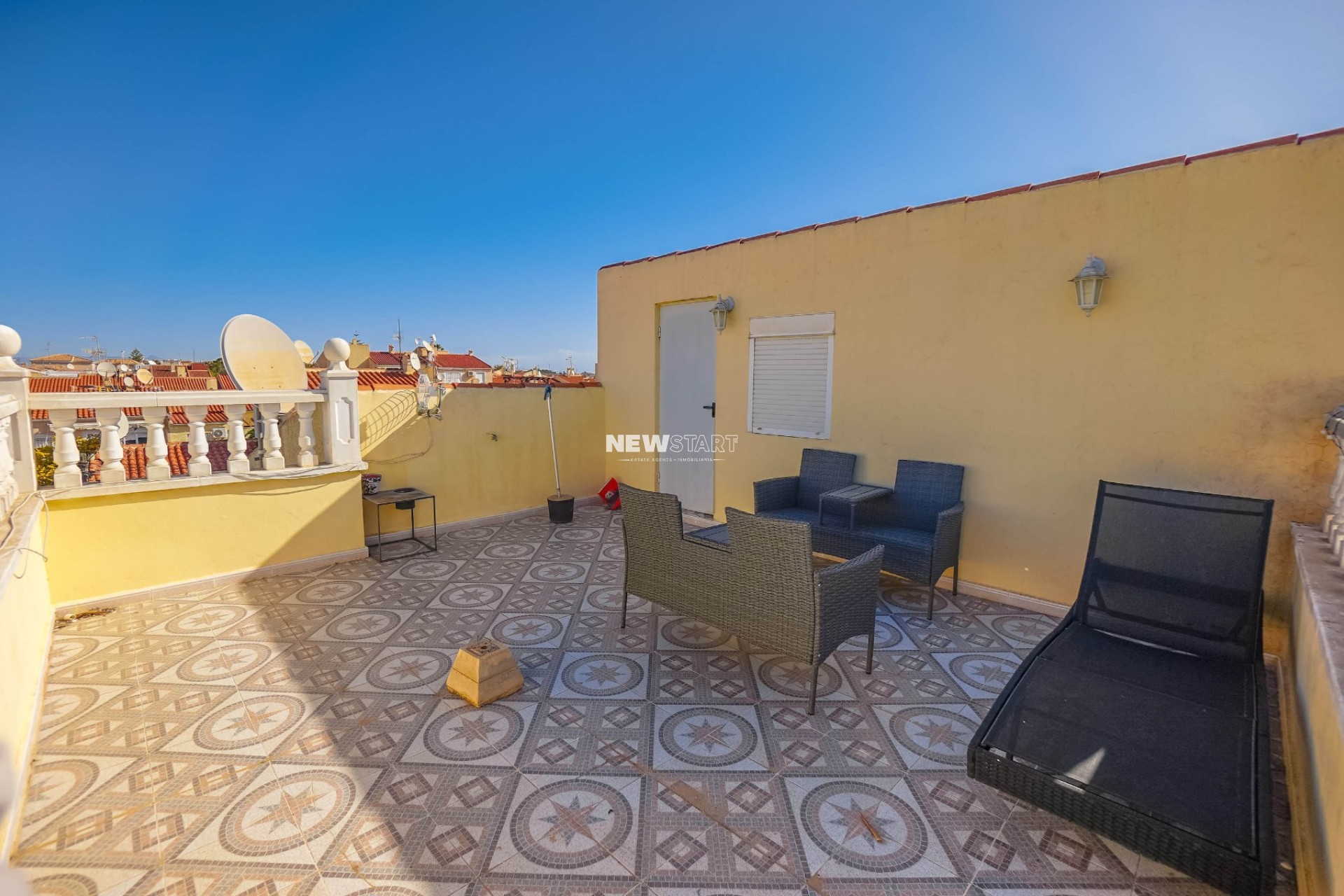 In einer erstklassigen Lage in der beliebten Urbanisation La Marina gelegen, bietet dieses erweiterte 2-Schlafzimmer, 2-Badezimmer Reihenhaus Josefina großzügigen und vielseitigen Wohnraum auf drei Ebenen, einschließlich eines Kellers und eines Dachsolariums. Die Immobilie hat eine Bausfläche von etwa 96 m² und genießt eine begehrte Südwestausrichtung in einer ruhigen Parkgegend, nur 2 Gehminuten von einer Vielzahl von lokalen Annehmlichkeiten entfernt, einschließlich Bars, Restaurants, Geschäften und etwas weiter entfernt, ein weiteres Einkaufsgebiet mit einem Supermarkt und weiteren Dienstleistungen.