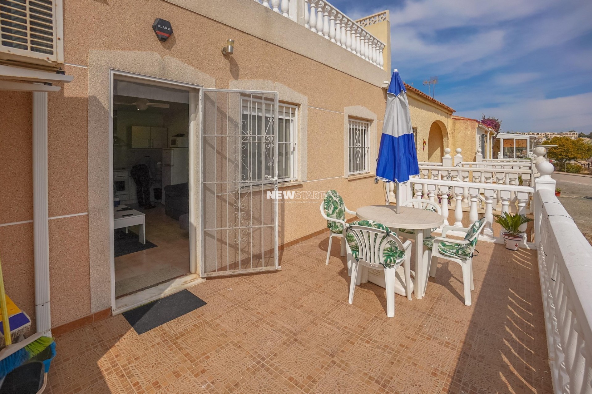 Wir freuen uns, Ihnen dieses gepflegte, erweiterte Reihenhaus vom Typ Rosita mit offener Aussicht präsentieren zu dürfen, das sich in einem ruhigen Wohnpark der Urbanisation La Marina befindet. Die Immobilie liegt nur 450 Meter von örtlichen Annehmlichkeiten entfernt, darunter Bars, einige Restaurants und ein zweites Geschäftsviertel mit vielen weiteren Dienstleistungen, einschließlich eines Supermarkts – ideal für Komfort und Ruhe zugleich. Das Haus wurde durchdacht erweitert und eines der besonderen Highlights ist das Dachsolarium mit atemberaubendem Meerblick. Die Unterkunft erstreckt sich über zwei Etagen und beginnt mit einer kleinen, erhöhten Terrasse, die zu einem vollständig gefliesten Garten mit Grill und Essbereich im Freien führt-perfekt für sonnige Tage und geselliges Beisammensein.