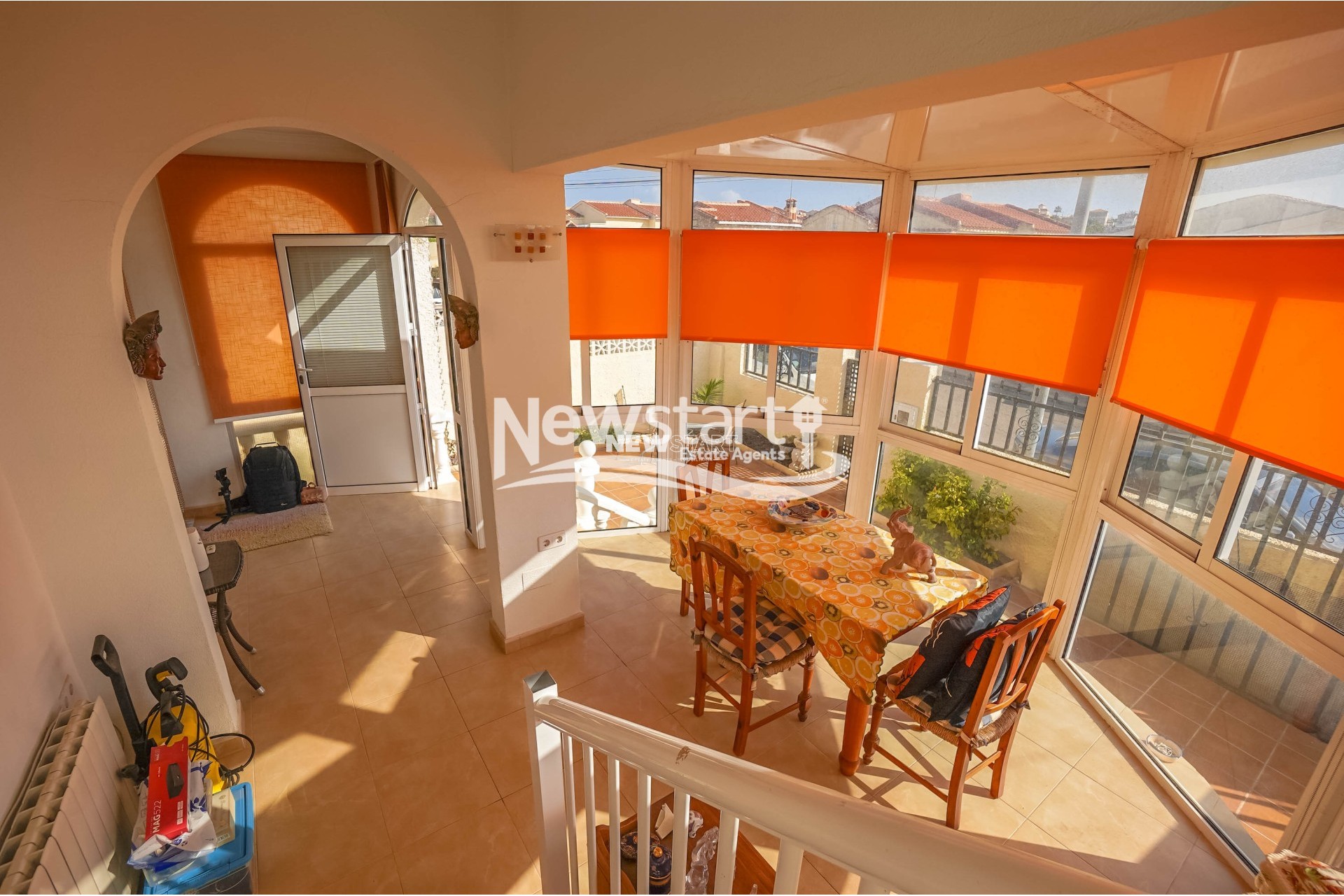 En venta, esta villa independiente de 3 dormitorios, 2 baños, ampliada, con anexo para huéspedes, en una ubicación privilegiada. Esta propiedad cuenta con una excelente ubicación, a solo 350 metros o a 3 minutos a pie de una variedad de servicios, incluidos bares, restaurantes de cocina variada y un supermercado, lo que la hace muy conveniente para las necesidades diarias. También está cerca de un complejo deportivo y piscina, ideal para la diversión familiar y actividades recreativas. Esta villa Lola bien presentada está en buen estado y ha sido ampliada, ofreciendo ahora un espacio habitable mucho mayor de 122 m² con una parcela completamente segura de 207 m². La villa tiene orientación sureste, comenzando con la entrada, unos escalones que llevan a una terraza cerrada y ampliada con un gran conservatorio, ahora utilizado como sala de verano. Esto da paso a un espacioso salón, una cocina independiente equipada con electrodomésticos, una zona de lavandería separada en la parte trasera, un área de comedor dedicada y acceso al jardín. Hay dos dormitorios amueblados, ambos con armarios empotrados, y al otro lado del pasillo un baño separado recién reformado con lavabo, inodoro y ducha de pared a pared. A través del conservatorio (sala de verano) se accede a una extensión, con escalones que conducen a una puerta que da a una encantadora terraza con asientos exteriores. Desde allí se accede a un anexo independiente, un tercer dormitorio principal con baño privado, bañera, ducha y cubículo.
