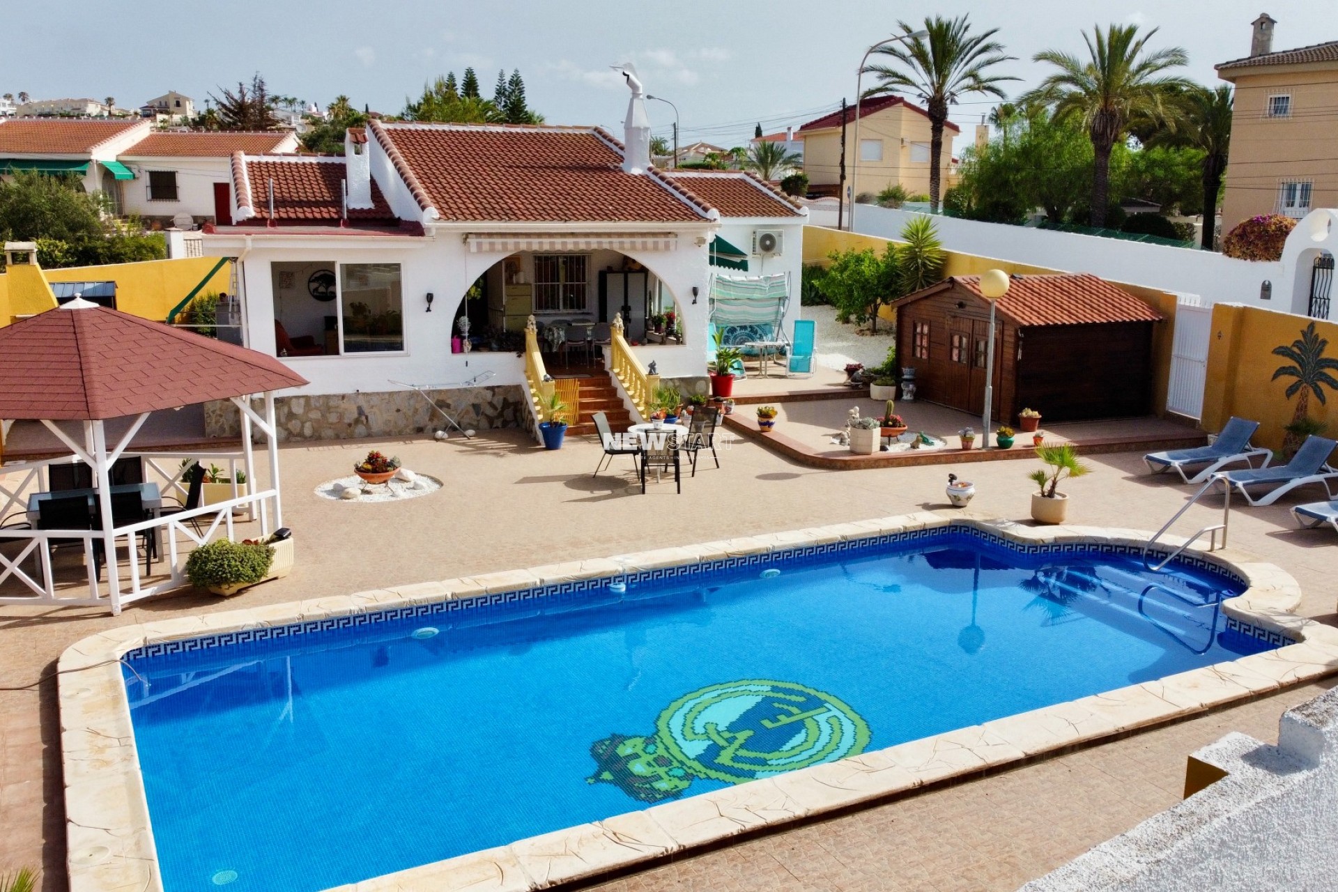 El exterior de la propiedad es igualmente impresionante, con una piscina privada de 10 x 5 metros con escaleras romanas, iluminación en la piscina y ducha exterior. La terraza alrededor de la piscina está completamente embaldosada para un fácil mantenimiento y ofrece amplio espacio para relajarse y tomar el sol. Un encantador cenador proporciona una zona de comedor con sombra junto a una barbacoa integrada, perfecta para entretener a familiares y amigos. El jardín también incluye un gran cobertizo de madera y una sala de almacenamiento/taller a medida. En la parte frontal de la parcela, encontrará una entrada privada con puertas automáticas y un carport que proporciona estacionamiento a la sombra. Esta propiedad combina un amplio espacio interior con excepcionales zonas exteriores, lo que la convierte en una opción ideal tanto para residencia permanente como para vacaciones bajo el sol mediterráneo.