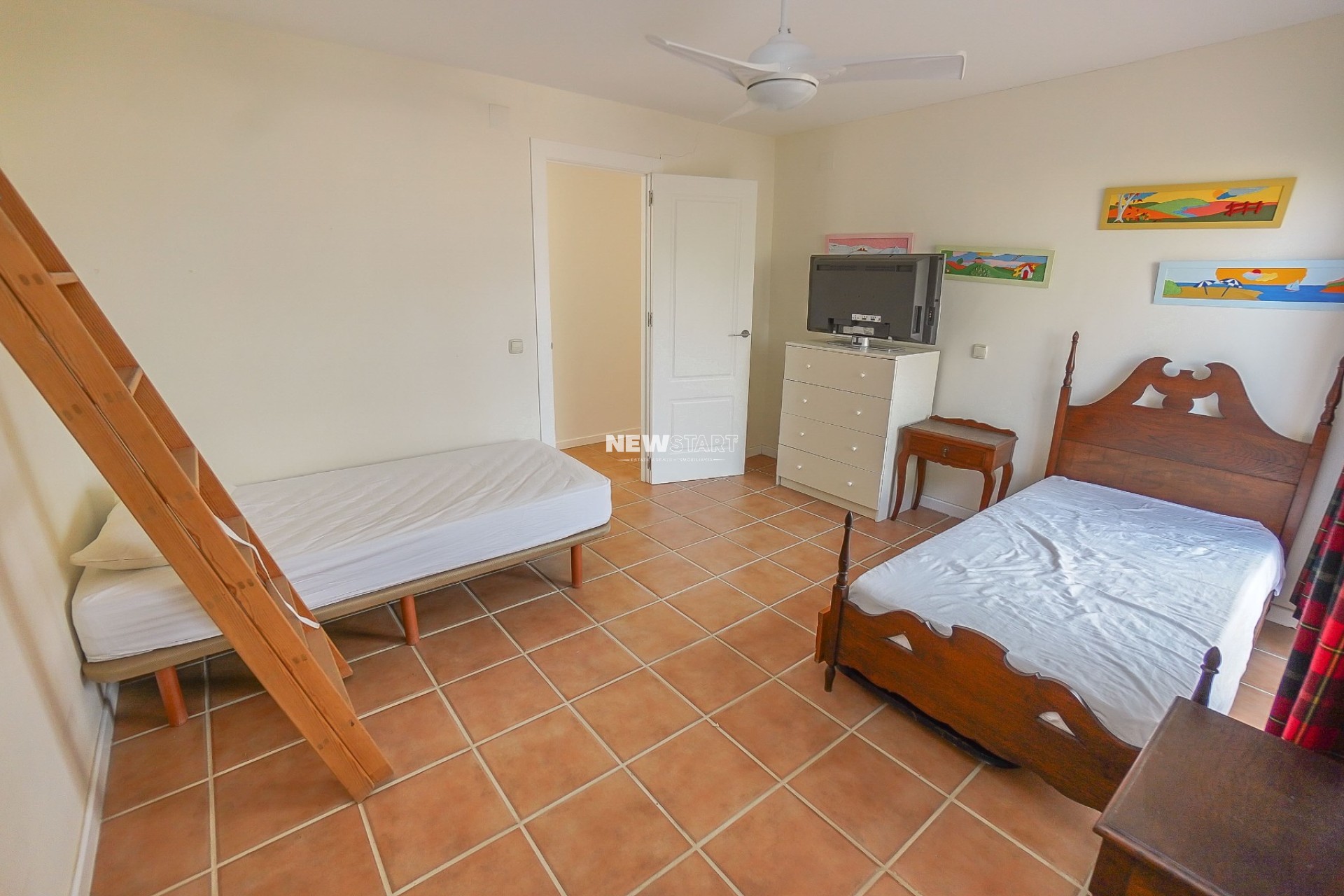En este nivel se encuentran tres dormitorios amplios y amueblados con armarios empotrados, dos dobles y uno triple de gran tamaño. Dos baños bellamente diseñados completan la planta baja, uno con ducha a ras de suelo y otro con bañera y ducha superior, ofreciendo una distribución ideal tanto para invitados como para familiares. En la planta superior hay tres dormitorios adicionales, incluido un excepcional dormitorio principal con un amplio vestidor y sala de vestir. Este dormitorio tiene acceso directo a una encantadora terraza orientada al oeste con vistas al jardín y a la piscina. Los otros dormitorios también disfrutan de espacio exterior y comparten una terraza orientada al este con vistas abiertas a una zona verde protegida. Dos baños completamente equipados en esta planta complementan el diseño contemporáneo y altamente funcional de la villa.