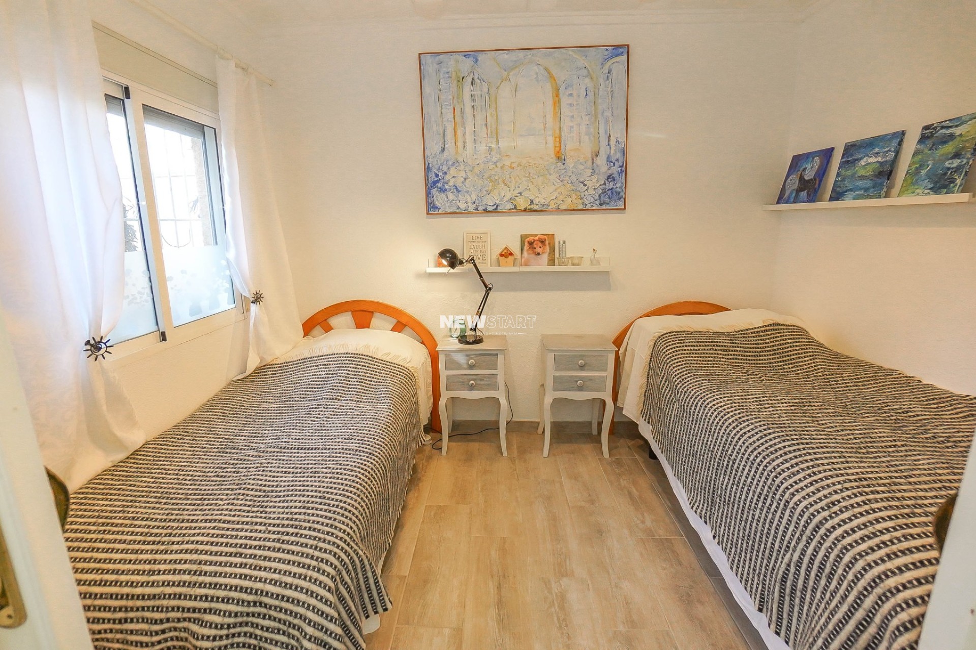 La vivienda consta de tres dormitorios bien presentados, incluyendo un dormitorio doble cómodo, un dormitorio con dos camas y una impresionante suite principal con armarios empotrados de pared a pared y un WC privado con lavabo. A lo largo del pasillo se encuentra un amplio vestidor, un elegante baño familiar reformado con bañera y ducha superior y un moderno cuarto de ducha con mampara de vidrio y plato plano, que da servicio a los otros dormitorios.