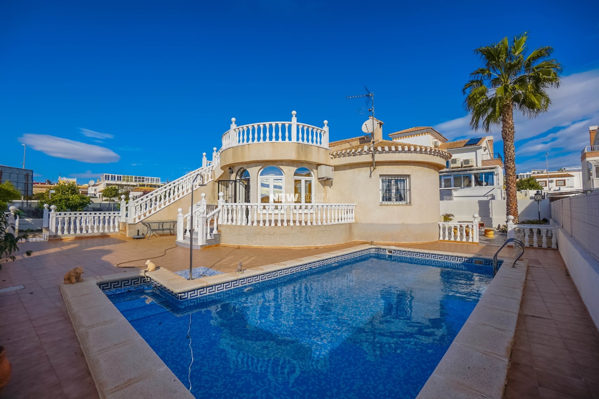 Cette superbe villa individuelle bien entretenue et exposée plein sud offre trois chambres spacieuses et deux salles de bains, ainsi qu’une grande piscine privée et un excellent emplacement au sein de l’urbanisation La Marina. Implantée sur un terrain généreux de 514 m² avec une surface construite totale de 167 m², y compris le garage souterrain, la propriété bénéficie d’une situation idéale à seulement 700 mètres ou 9 minutes à pied des commodités locales, comprenant un supermarché, des commerces, des bars et un large choix de restaurants.