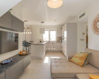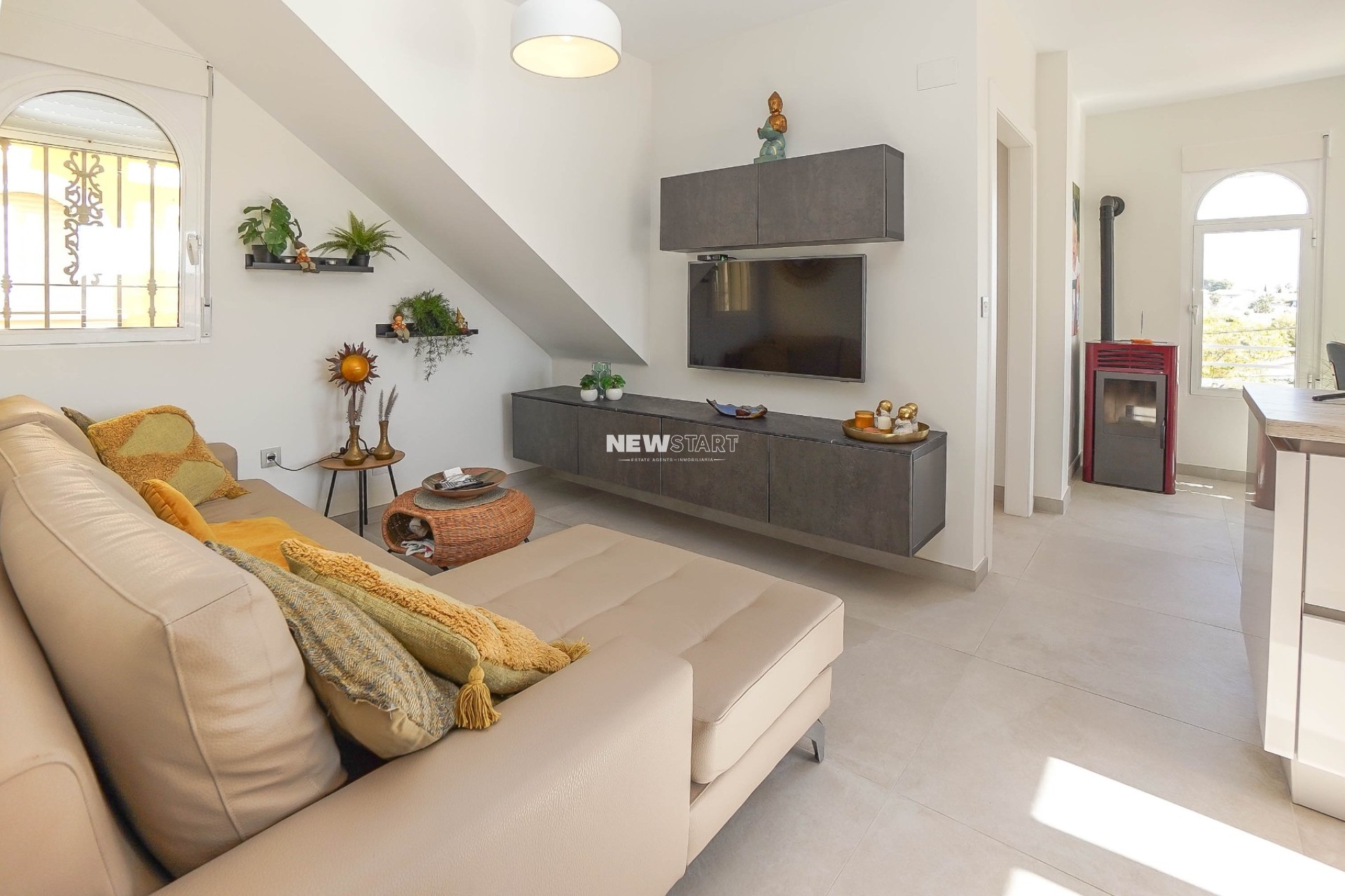 De accommodatie is verdeeld over twee verdiepingen. Op de begane grond bevindt zich een zeer lichte en luchtige, moderne woonkamer met eethoek en een pelletkachel. Een nieuwe, open en zeer stijlvolle keuken met Silestone aanrechten en ingebouwde apparaten. Er is een grote gastenkamer met kasten, die ook beschikt over een moderne en-suite badkamer met wastafel, hangend toilet en een inloopdouche met vlakke plaat en glazen scherm. Een trap leidt naar de eerste verdieping, waar we een overdekt terras vinden, ideaal voor buiten eten. Dit leidt naar een hal en vervolgens naar een ruime en comfortabele, lichte en moderne woonkamer met een pelletkachel en een nieuwe, moderne open keuken met ingebouwde apparaten en een eiland dat als eetgedeelte wordt gebruikt. Er zijn twee tweepersoons slaapkamers, beide met kasten, en een nieuw ingerichte luxe moderne badkamer met wastafel, toilet en een wanddouche. Verder naar de bovenste verdieping biedt een prachtig groot dakterras met een op maat gemaakte aluminium pergola en verstelbaar zonnescherm een overdekte buitenruimte om te eten. Het dakterras is ontworpen om te ontspannen, met een heerlijke jacuzzi, de perfecte plek om te genieten van adembenemende uitzichten over de regio, inclusief de zee van Guardamar del Segura.