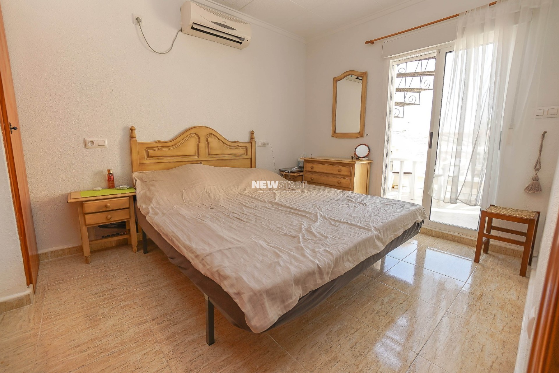 Op de eerste verdieping zijn er twee goed proportionele slaapkamers, beide met ingebouwde kasten, en een moderne badkamer met een inloopdouche. De patio-deuren openen naar een privé balkon waar u kunt genieten van mooie uitzichten op de omliggende omgeving. Hier vindt u een wenteltrap die leidt naar een groot dakterras, dat nog meer buitenruimte biedt met fantastische uitzichten over het gebied, inclusief verre zeezichten richting Guardamar, een ideale plek om te ontspannen of te entertainen terwijl u geniet van het mediterrane klimaat. De woning is in uitstekende decoratieve staat en wordt te koop aangeboden als volledig gemeubileerd, onder voorbehoud van inventaris, maar omvat alle witgoed. Extra kenmerken zijn onder andere een vergroot woonoppervlak, een onderbouw voor opslag, verbeterde aluminiumramen, beveiligingsroosters en mooie open uitzichten. Er is voldoende parkeergelegenheid buiten de weg, die handig in de buurt ligt.