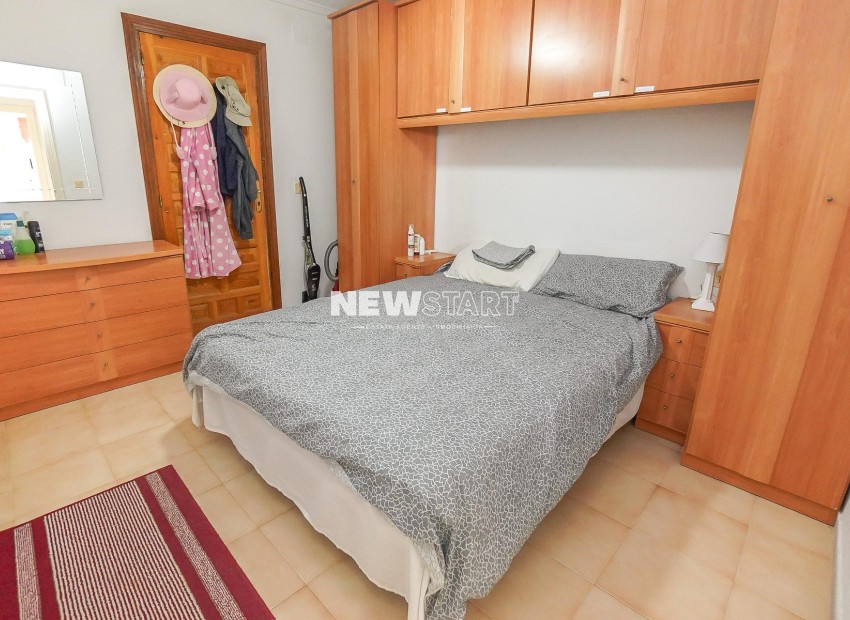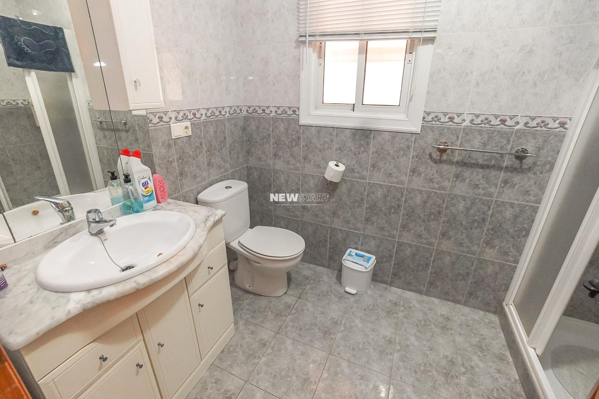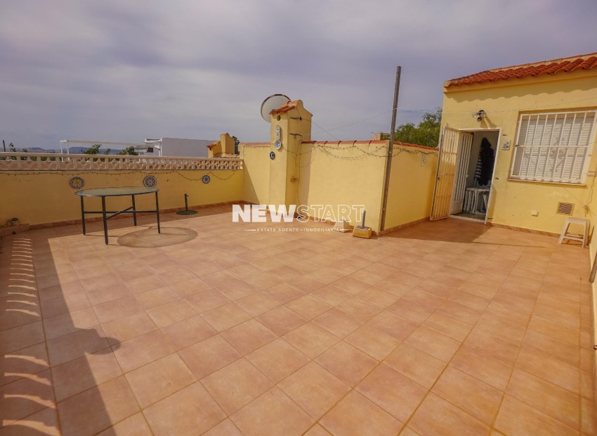 Wij zijn verheugd deze goed onderhouden, uitgebouwde Rosita-woning in twee verdiepingen te presenteren, met open uitzicht, gelegen in een rustige woonwijk in parkomgeving van Urb. La Marina. De woning bevindt zich op slechts 450 meter van lokale voorzieningen, zoals bars, enkele restaurants en een tweede commercieel gebied met veel meer diensten, waaronder een supermarkt. Hierdoor geniet u van zowel gemak als rust. De woning is zorgvuldig uitgebreid en een van de opvallendste kenmerken is het dakterras met prachtig zeezicht. De indeling loopt over twee verdiepingen, beginnend met een kleine verhoogde voorterras die leidt naar een volledig betegelde tuin met barbecue en een eetgedeelte buiten – ideaal om te entertainen en te genieten van het zonnige weer.