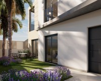 De buitenruimtes van deze woningen zijn ontworpen om optimaal te genieten van het mediterrane klimaat. Elke bungalow heeft een privétuin, perfect voor momenten van ontspanning in de buitenlucht. De terrassen bieden extra ruimte om buiten te eten of gewoon te ontspannen. Daarnaast is er de optie om een privézwembad toe te voegen, ideaal om af te koelen tijdens de warme zomerdagen. Het solarium is een andere attractie, die extra ruimte biedt om te zonnebaden of te genieten van het uitzicht op de omgeving. De aanwezigheid van elektrische rolluiken voegt een vleugje moderniteit en comfort toe aan de woningen.
