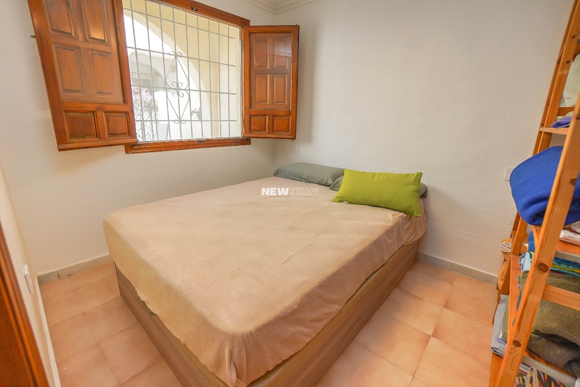 Buiten biedt de volledig opnieuw betegelde tuin of het terras een nette en onderhoudsvriendelijke ruimte die ideaal is om buiten te eten, te ontspannen in de zon of gasten te ontvangen. De gedeeltelijk overdekte veranda zorgt voor een aangename schaduwplek tijdens de warmere maanden. Handige parkeergelegenheid buiten de weg is direct voor de woning en in de nabijheid beschikbaar dankzij de rustige ligging in een Parque omgeving zonder doorgaand verkeer.