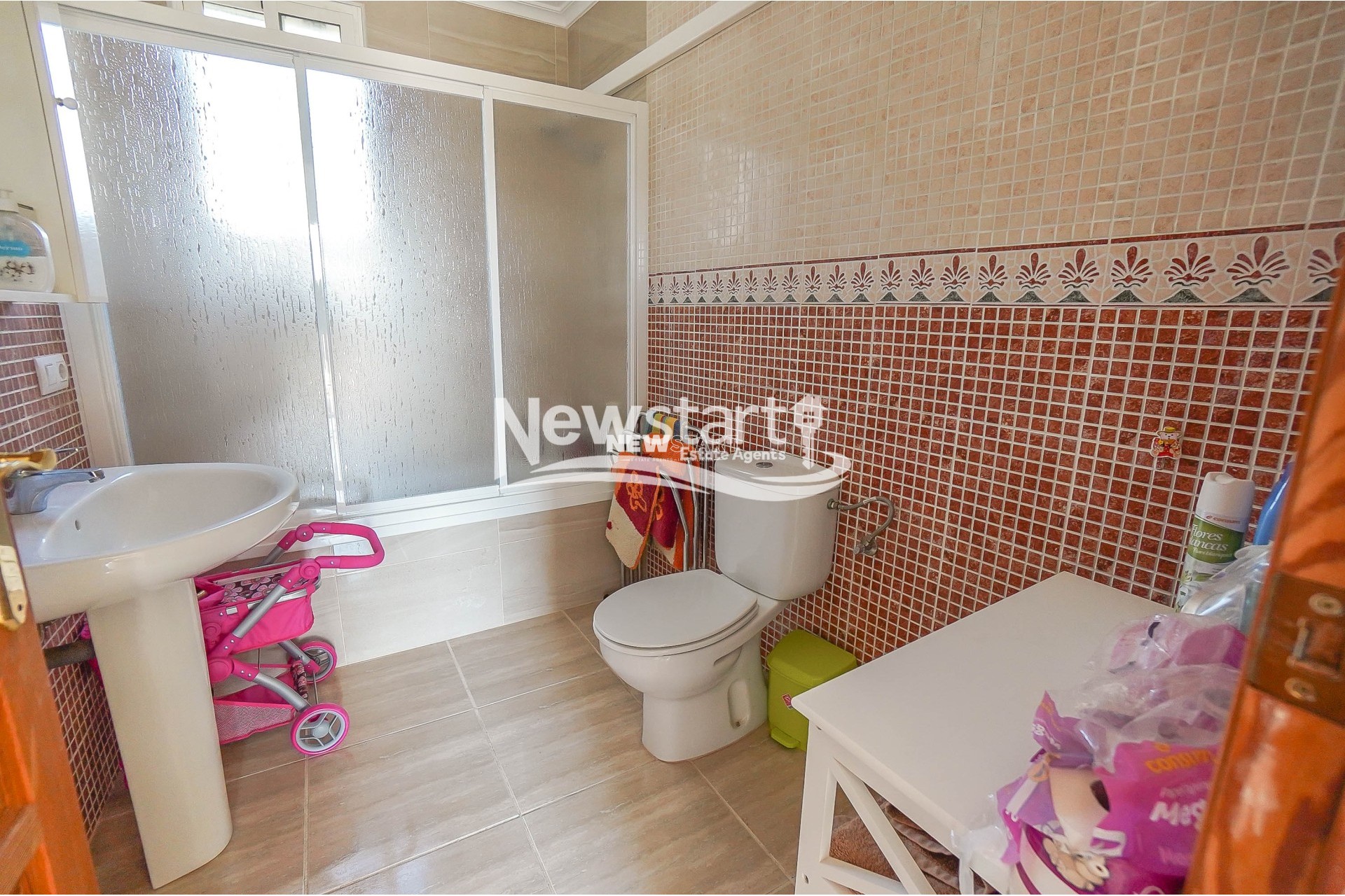 On sale, this extended 3-bedroom, 2-bathroom detached villa with a guest annexe, in a prime location. This property boasts an excellent location, just 350 meters or a 3-minute stroll from a variety of amenities, including bars, multi-cuisine restaurants, and a supermarket, making it highly convenient for everyday needs. It is also close to a sports and swimming pool complex, which is great for family fun and leisure activities. This well-presented Lola villa is in good condition and has been extended, and now offers a much bigger living space of 122 M2 with a fully secure plot of 207 M2. The villa has a southeast orientation, starting with the entrance, steps leading up and an enclosed and extended terrace with a large conservatory, now used as a summer room. This leads into a spacious lounge, a separate fitted kitchen with appliances and a separate utility area at the rear and a dedicated dining area and access to the garden. There are two furnished bedrooms both have fitted wardrobes and across the hall a separate newly refurbished bathroom suite with a sink, a toilet and a wall-to-wall shower. Through the conservatory (summer room) you have access to an extension, steps lead up to a door that opens out to a lovely sun terrace with outdoor seating. From which you have a separate (guest annexe) a third and master bedroom with a private en-suite with a bath and overhead shower and cubical.