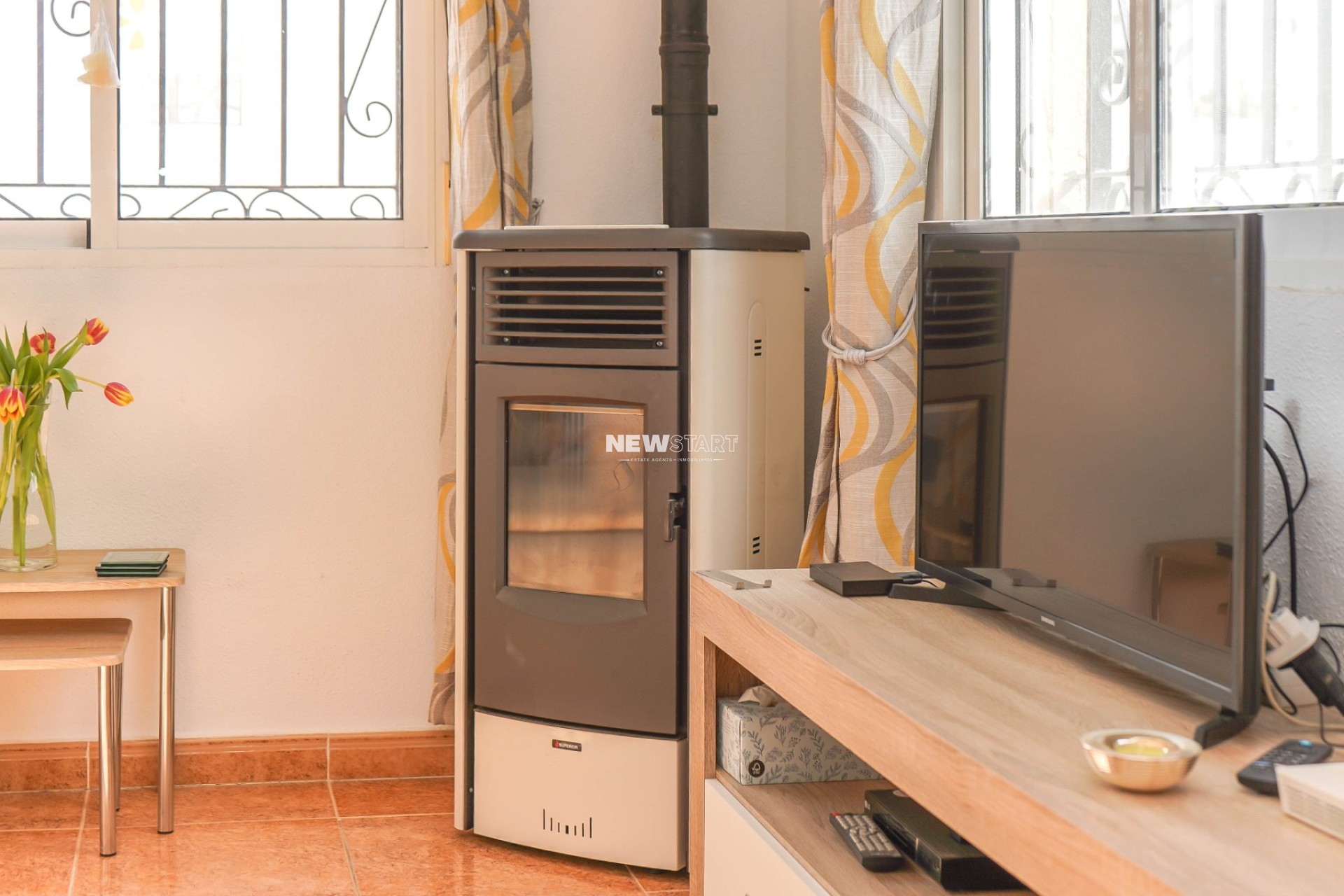 Externally, the villa occupies a fully paved, low-maintenance plot designed for both practicality and enjoyment. To the side and rear, there is an additional outdoor dining area, a concrete barbecue ideal for entertaining family and friends or simply relaxing in the Mediterranean climate. The garden is complemented by potted plants and shrubs, and an area covered with artificial turf, adding a welcoming touch of colour, along with two generously sized storage cupboards providing excellent practicality.