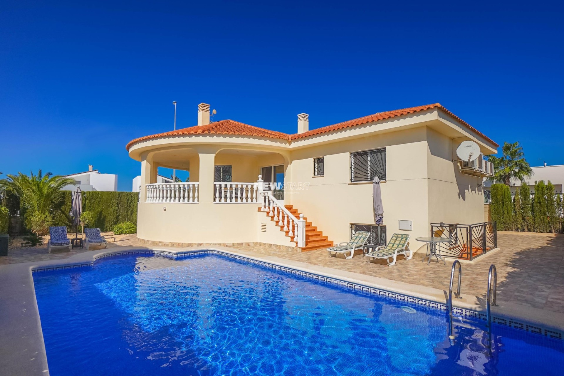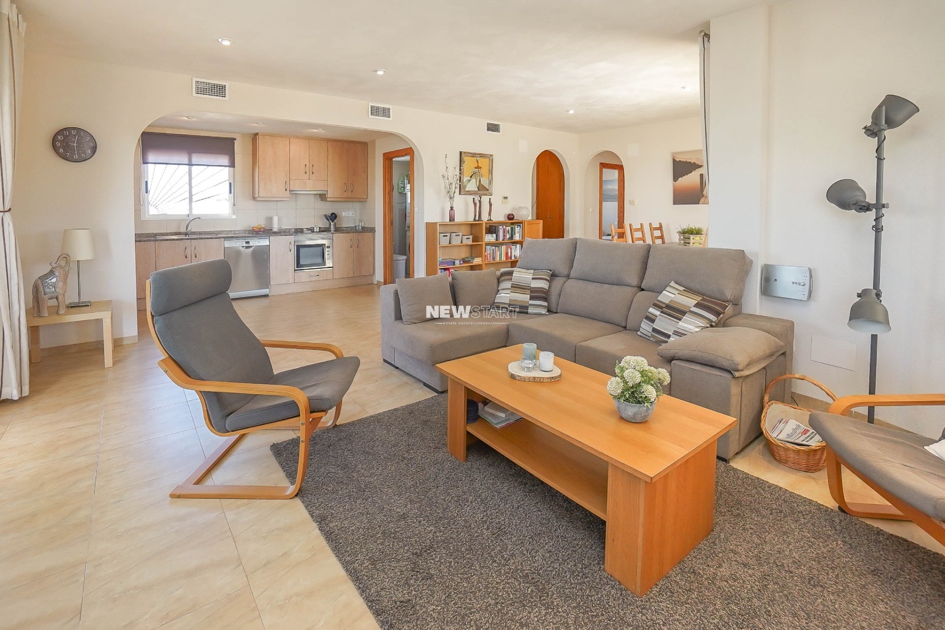 An impressive and spacious 5-bedroom, 3-bathroom villa with an 8x4 pool, situated in the highly sought-after area of Urb El Oasis. This villa is immaculately presented and offers a high standard of living, located in a peaceful, tranquil area within walking distance of a variety of amenities including bars, restaurants serving a range of international cuisine, supermarkets, and more. The villa boasts a built area of 270 m² and sits on a generous plot of land. The accommodation is spread across two floors, offering two separate, independent living areas, ideal for large families or guests. On the ground floor, the welcoming entrance is accessed via a few steps, leading to a spacious and bright living room that opens onto a large, south-facing, covered wraparound terrace complete with a dedicated outdoor dining area. The open-plan kitchen features high-quality appliances and granite countertops. Additionally, there is a separate dining room with views over the pool area and a hallway that leads to 2 double bedrooms with built-in wardrobes, including the master bedroom with an en-suite bathroom featuring a shower. There is also a family bathroom with a wall-to-wall shower.